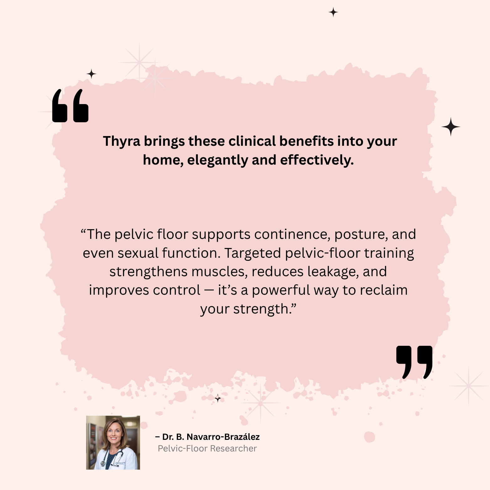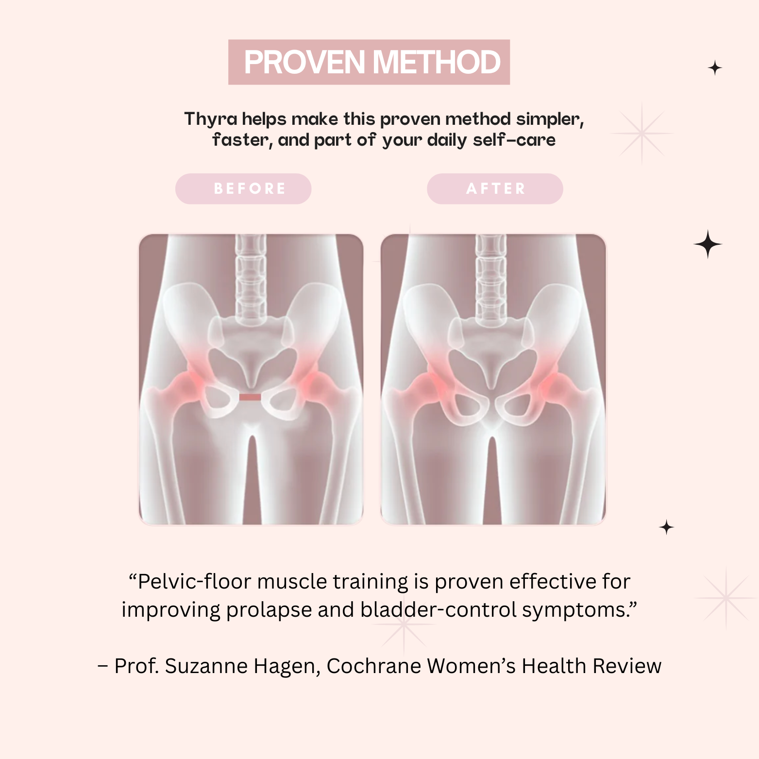 In just minutes a day, Thyra helps you strengthen your core, tighten your thighs, boost intimacy, and support post-partum or prolapse recovery naturally.